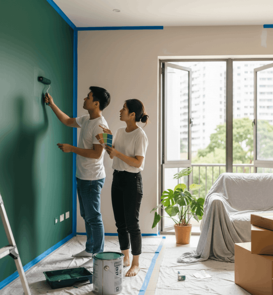 This is the standard for most HDB and condo interiors. Modern water-based paints are quick-drying and have low odor.